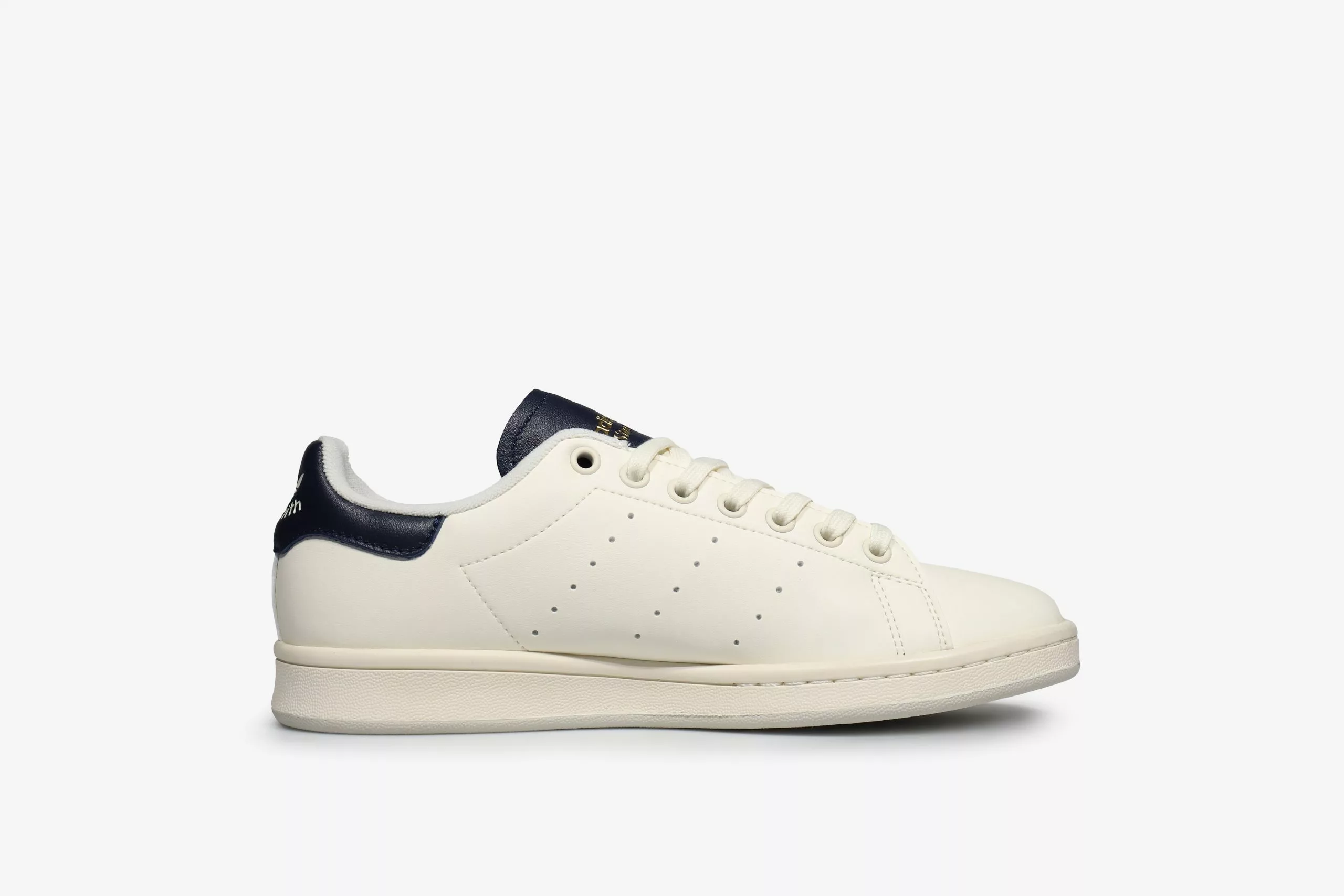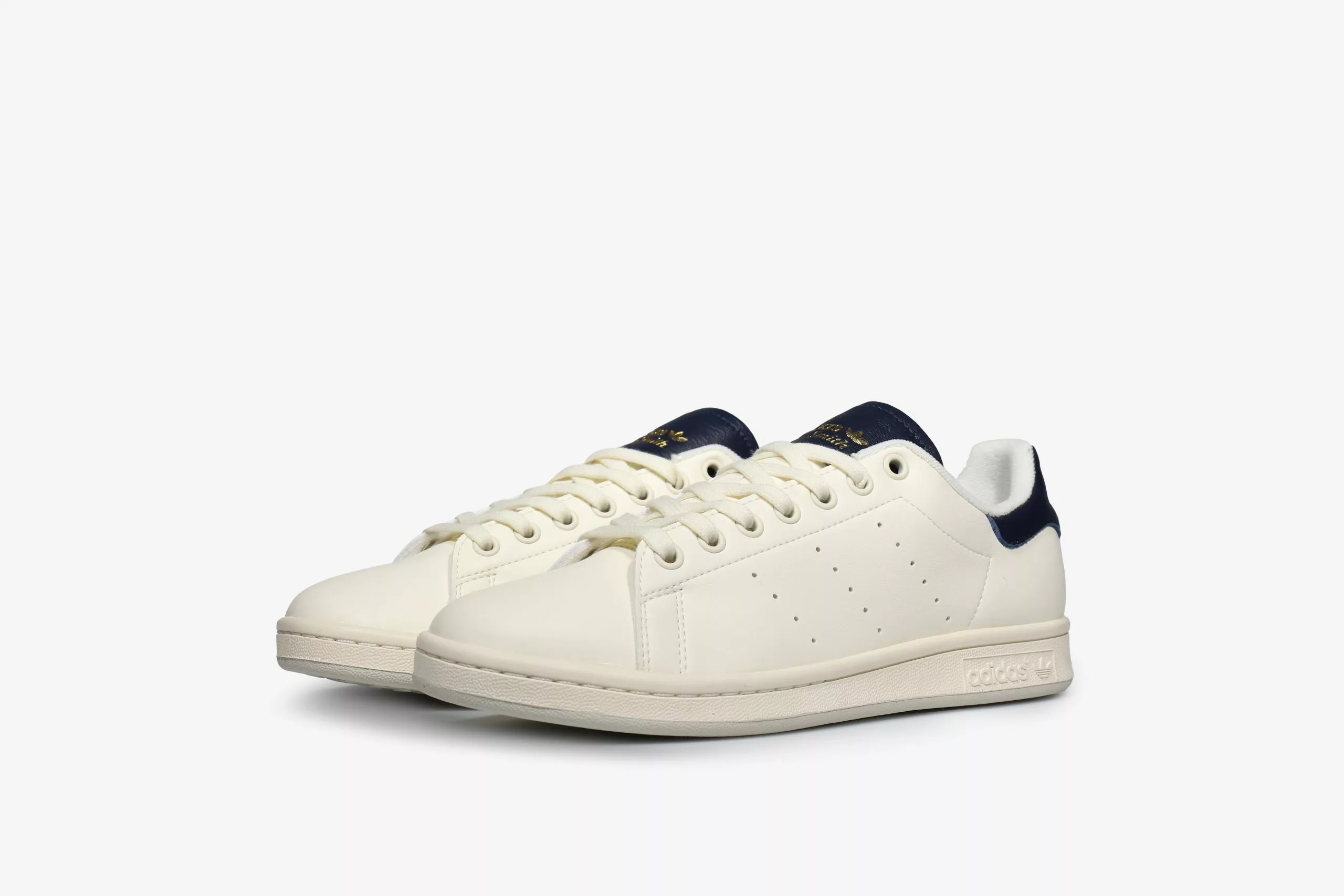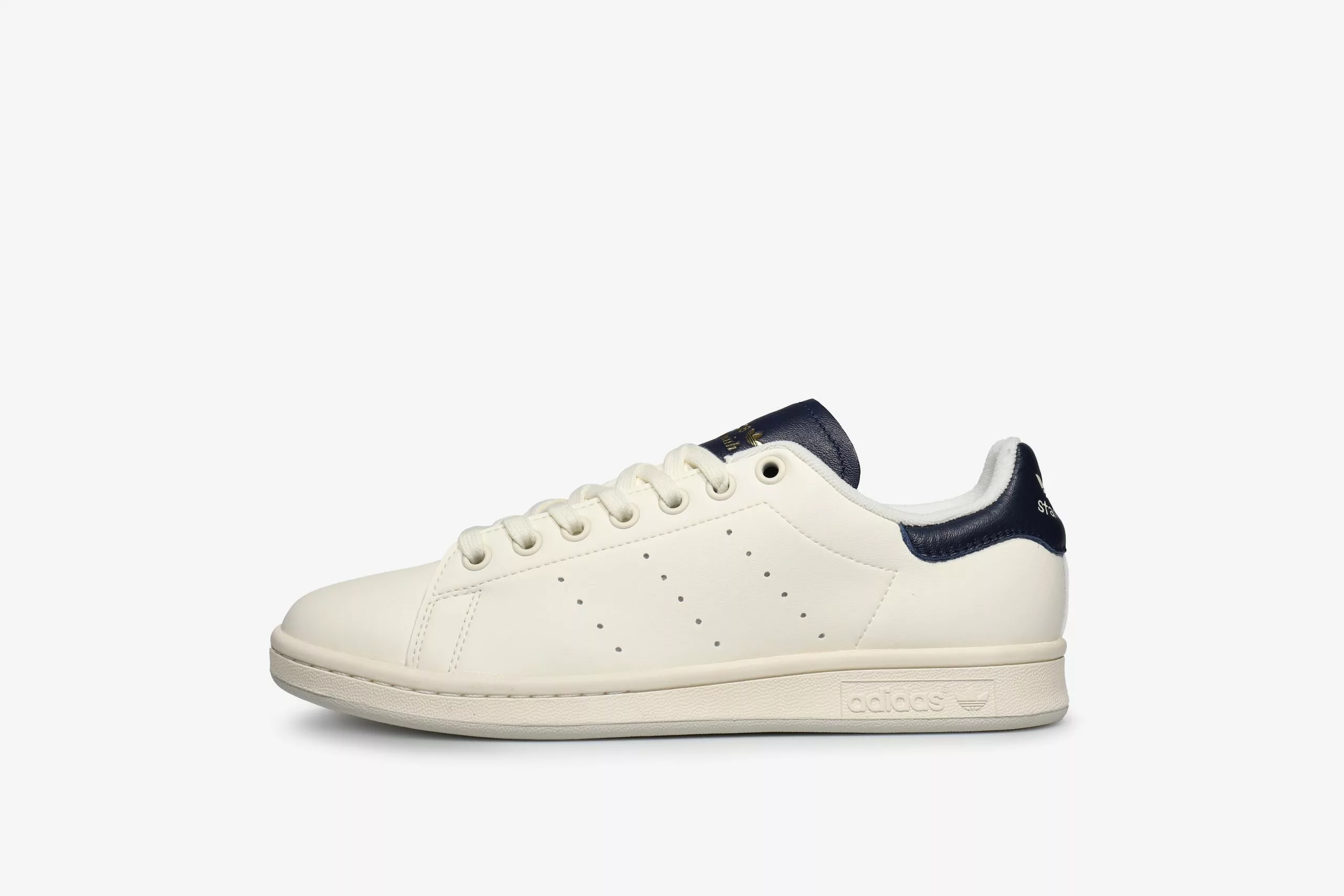 The adidas Stan Smith has a certain subtlety to them that has lead to their long history as a footwear icon and this pair is only looking sleeker. Flashback to an aura of the ’70s. These Stan Smith shoes are inspired by adidas sports heritage. A muted vintage palette is a small reminder that the essential white trainer also looks fresh in off-white. Metallic-gold details on the tongue and lace tips give them a premium touch. Made with a series of recycled materials, this upper features at least 50% recycled content.