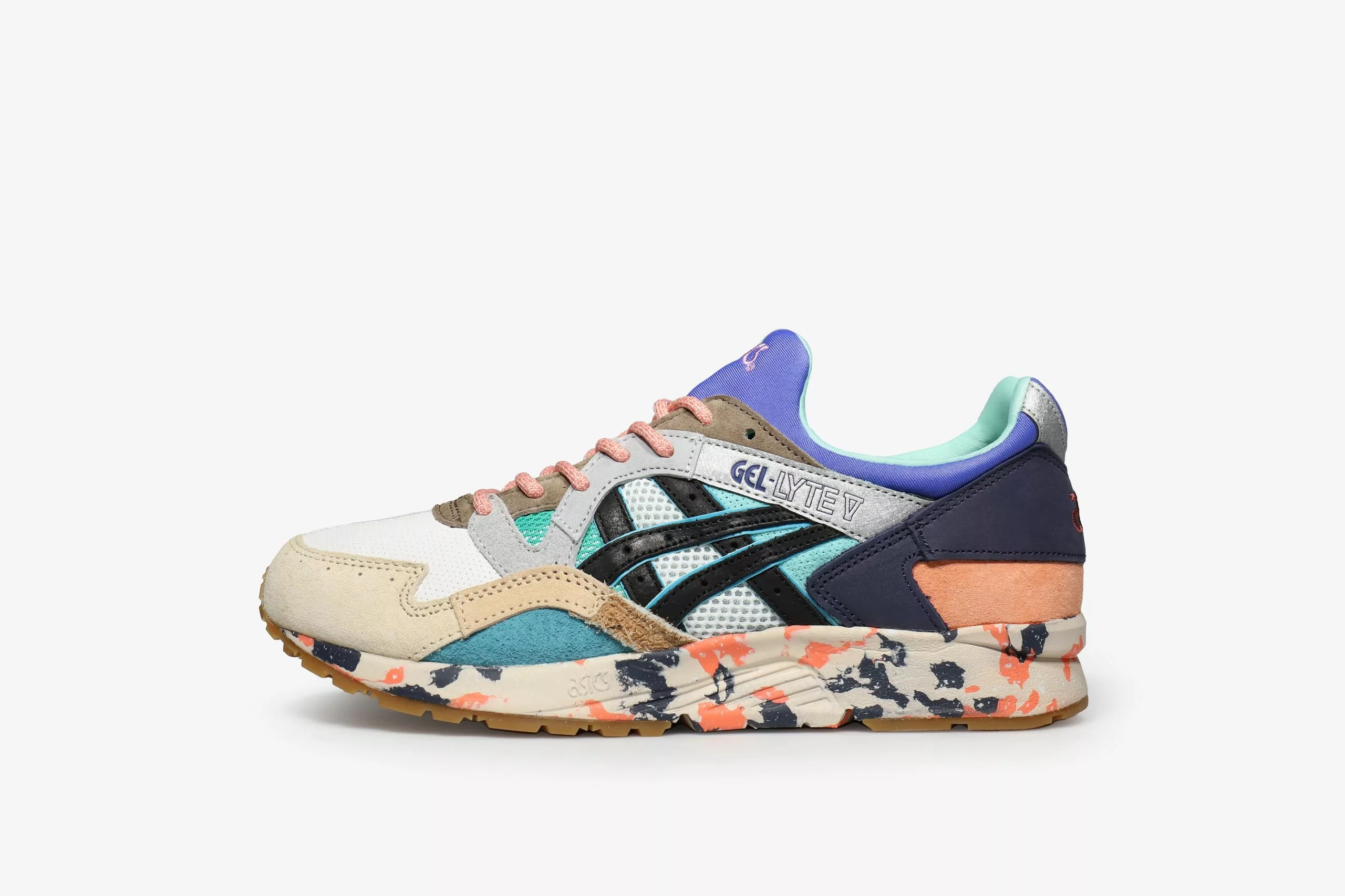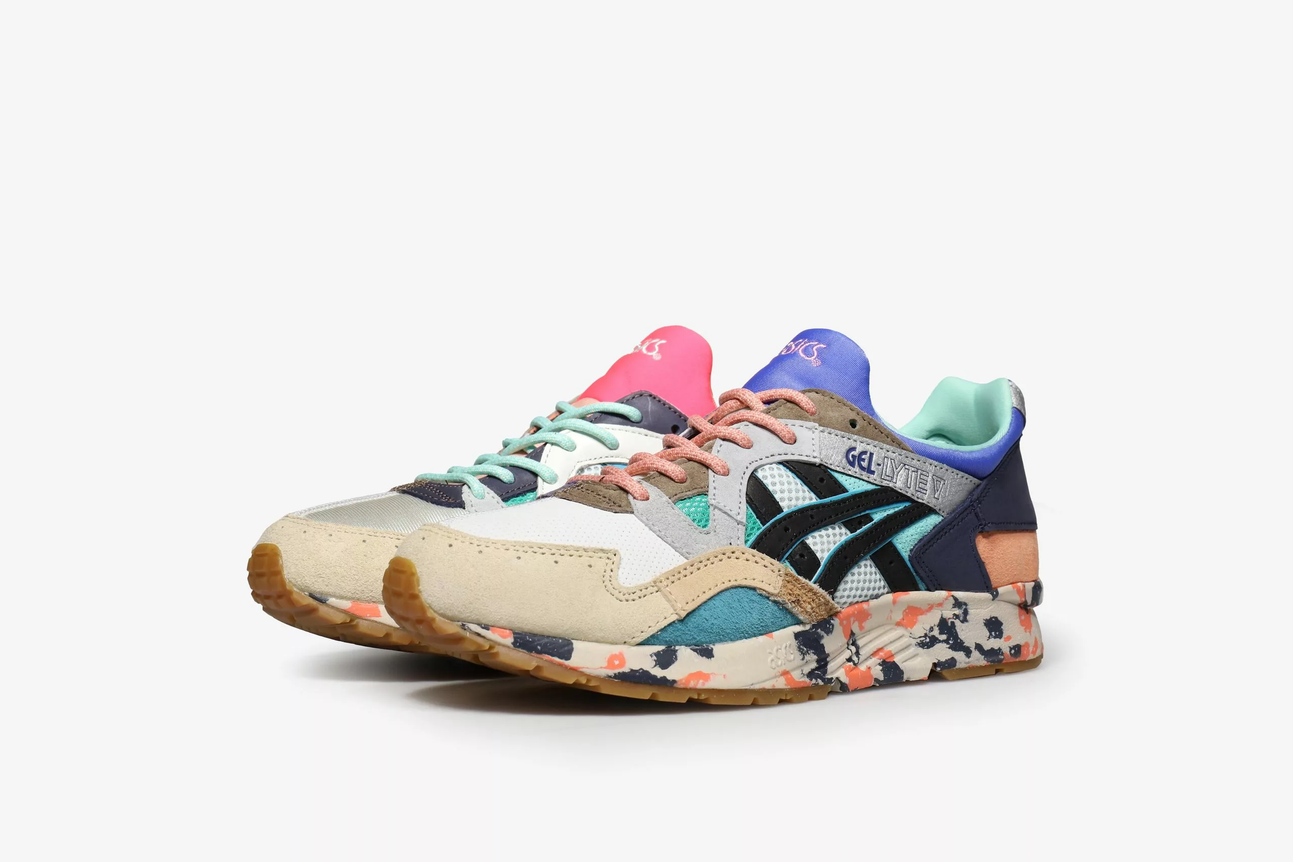 This rendition of the Gel-Lyte V takes inspiration from discarded cuttings on the floor of a design studio, a divine amalgamation of off-cuts and forgotten ideas. The results are a raw, youthful and expressive colourway that feels as authentic as the design process that went behind it. MONO-SOCKâ„¢ construction and GELâ„¢ Cushioning technology provide the comfort that has made this silhouette a mainstay in many wardrobes since its release in 1993.Â