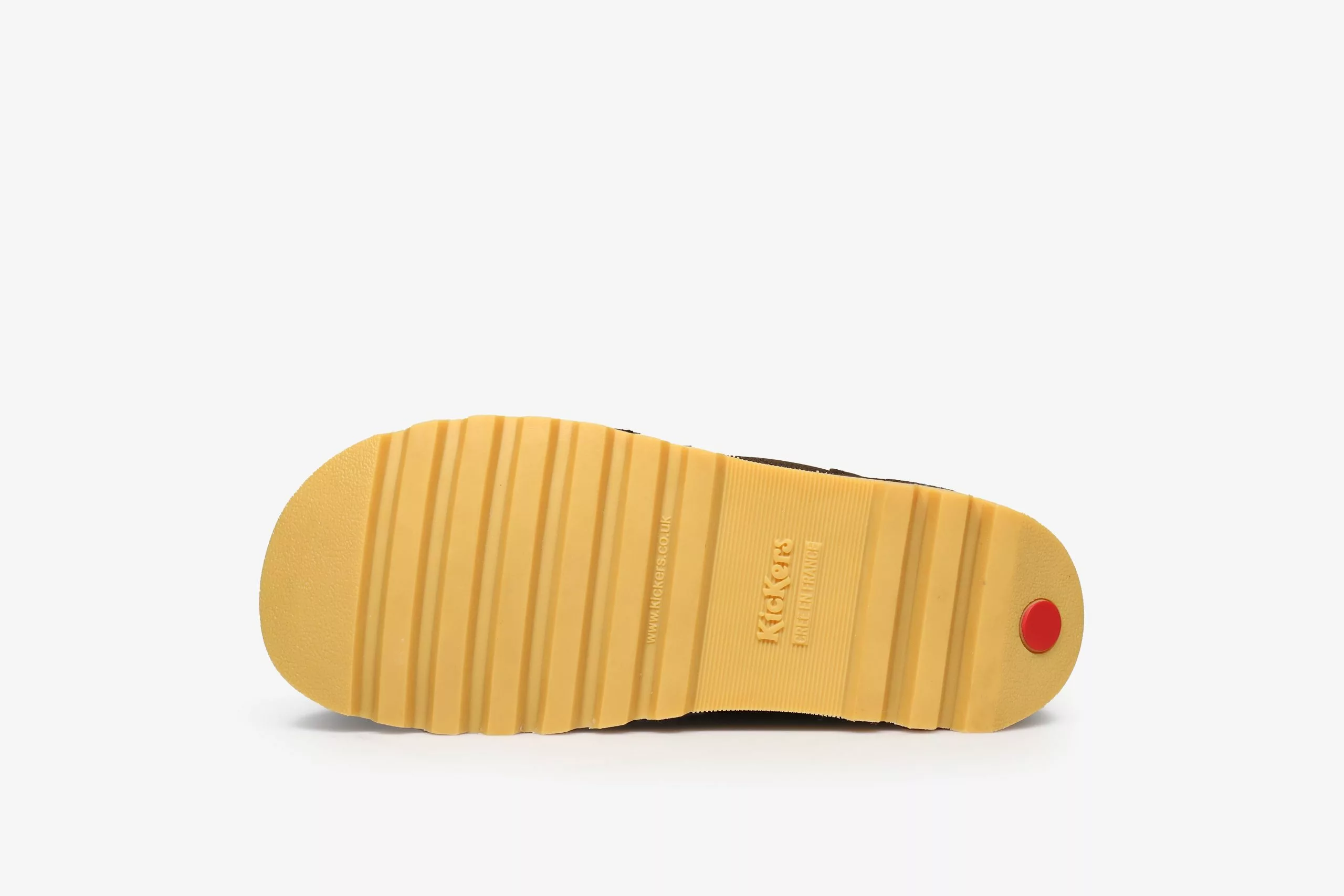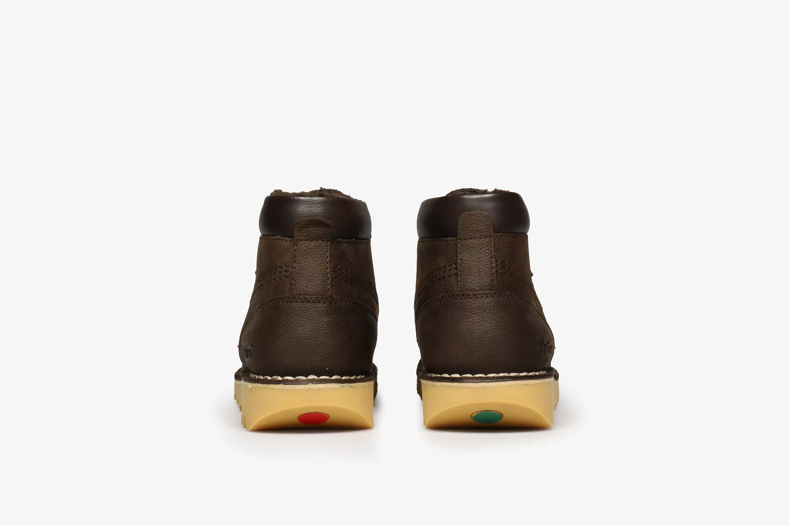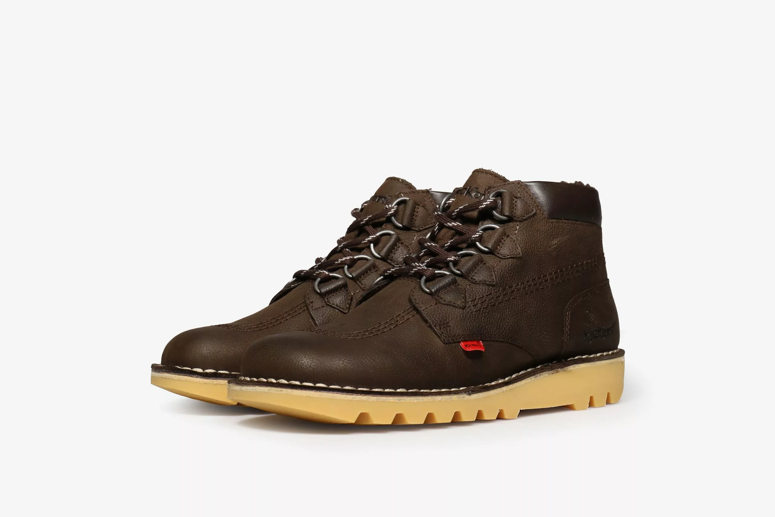 The Kickers Kick Hi gets primed for the outdoors featuring quality leather uppers with classic triple-stitch detailing and an ultra cosy woolly lining for ultimate heat insulation. The trademark Kickers rubber soles are hardwearing with standout style and the metal D-eyelets and thick rope laces enhance this boot’s durability. The suede will age naturally over time to create a very special pair of Kicks to add to your collection.