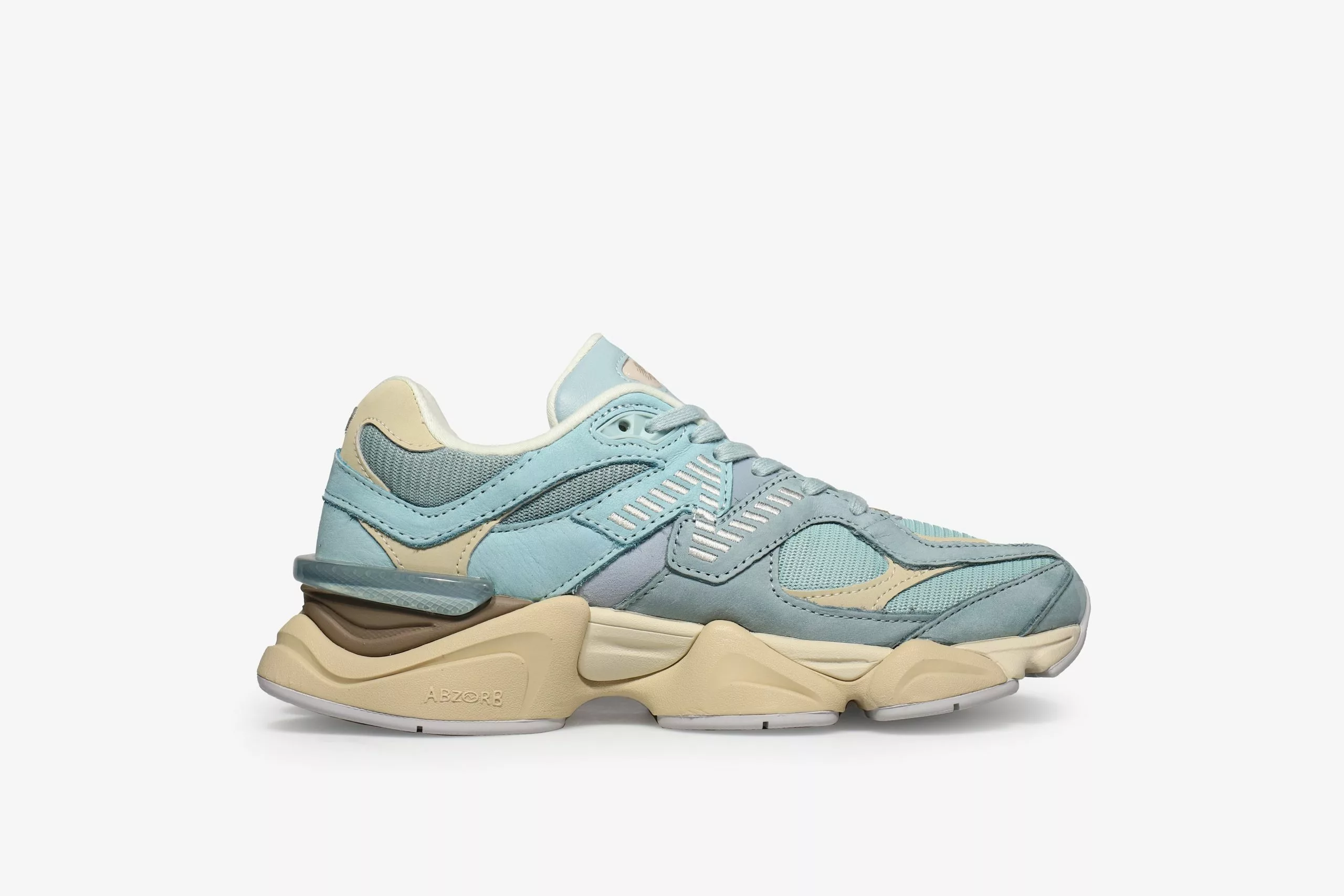 The 90/60 from New Balance returns, this time in a light blue colourway with beige accents which gives this pair a dreamy aesthetic. The difference in textures helps block out the technical archive-inspired upper whilst down below New Balance premieres some all-new tooling that makes use of their ABZORB cushioning to give a comfortable feel to proceedings.
