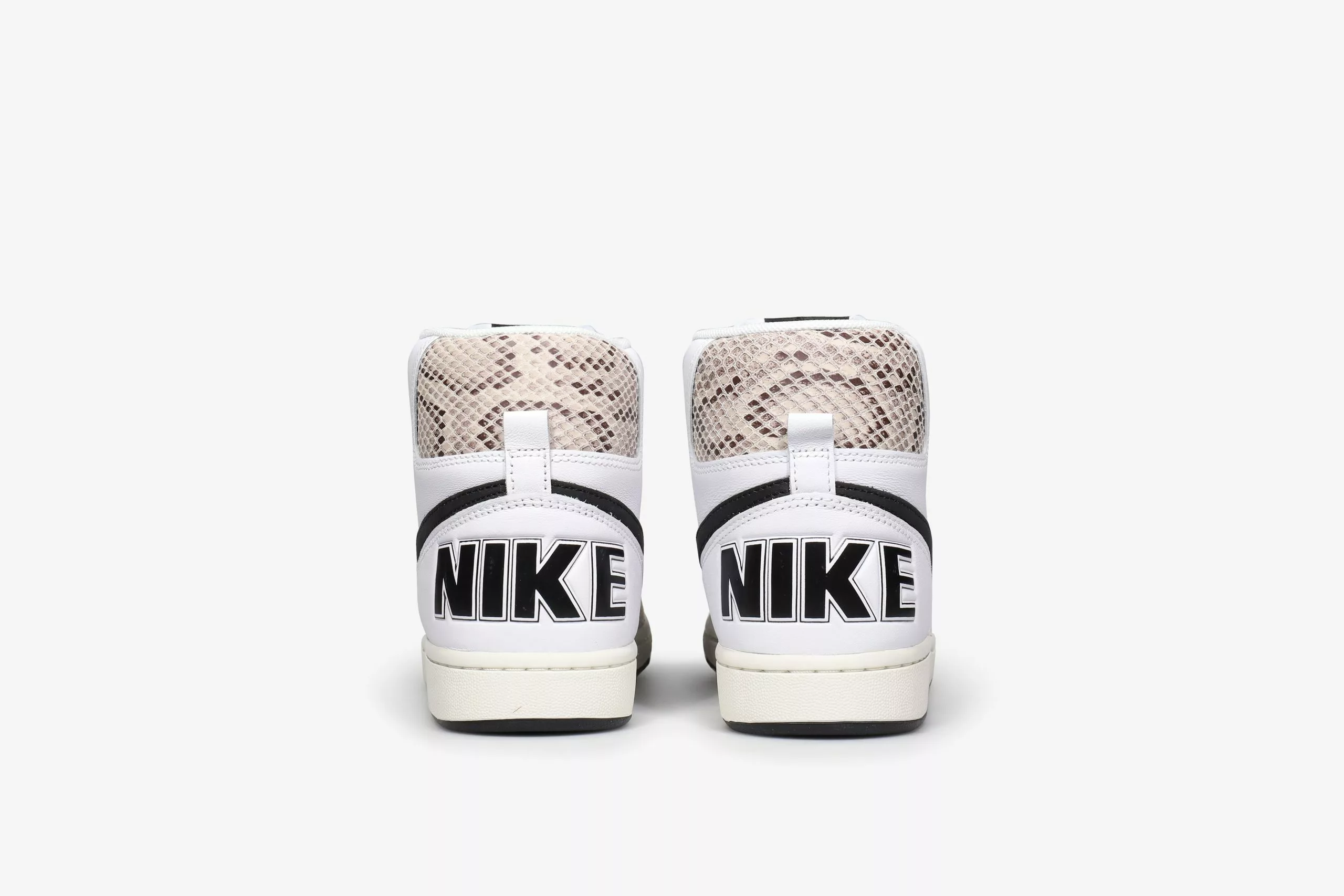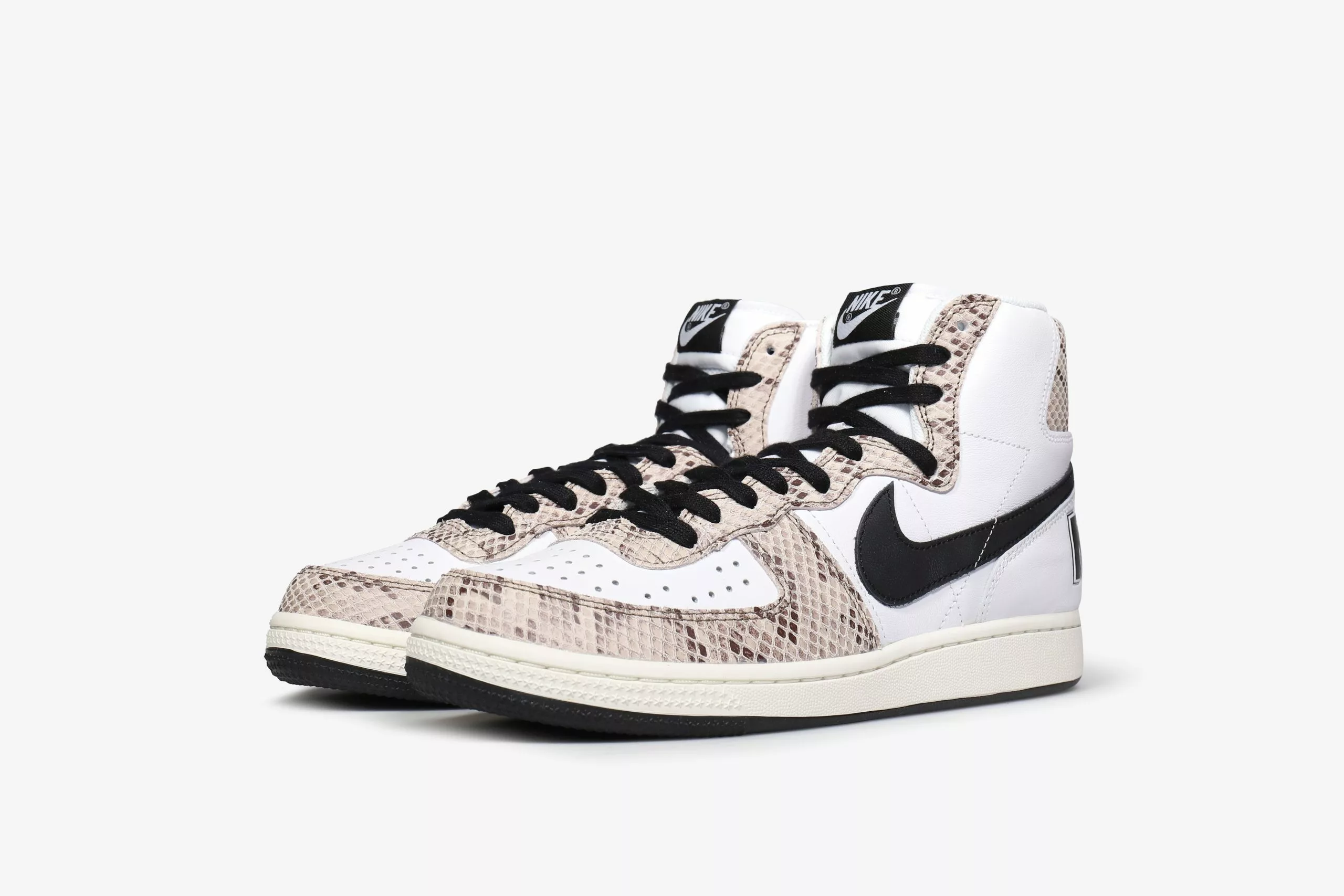 Untouched, unaltered and straight from the vault—you get the picture. The Terminator High lets you step back to the era of hook shots, knee pads and calf-high socks. Returning to the ’85 original (the 1st signature school shoe by Nike), the throwback look goes a little wild with snakeskin print overlays. Crisp White underlays keep your look smoother than backboard glass, while retro branding delivers a big varsity finish.